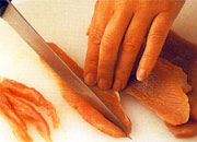 minutes, until firm. Using a sharp knife, cut it into thin strips. Heat